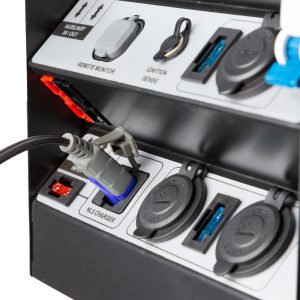The DC25 Distribution Box features a high-performance 25A DC-DC charge system that offers charging from the vehicle alternator as well as from Solar panels. Multiple outputs offer USB charging and fused DC sockets for connecting 12V devices.