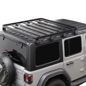 This 1358mm/53.5″ long, 1/2 size, Slimline II cargo carrying roof rack kit for your Jeep Wrangler 4xe contains the Slimline II Tray and Wind Deflector, as well as 8 Gutter Mount Legs for mounting the Tray to the vehicle.