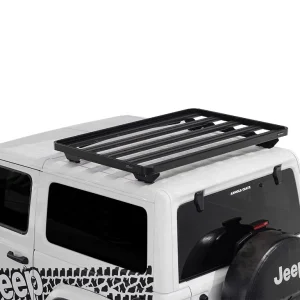 This Slimline II 1/2 rack kit contains all the components needed to mount the Slimline II cargo carrying rack to a Jeep JL 2 door including the Slimline II Tray (1425mm x 954mm), the Jeep Extreme Mounting System and a Wind Deflector. Drilling is required for installation.