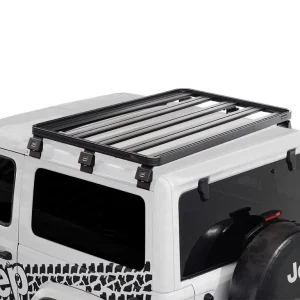 This 954mm/37.6″ long, half-size, Slimline II cargo carrying roof rack kit for your Jeep Wrangler JL 2 Door contains the Slimline II Tray and Wind Deflector, as well as 6 Gutter Mount Legs for mounting the Tray to the vehicle. Installs easily with no drilling required.
