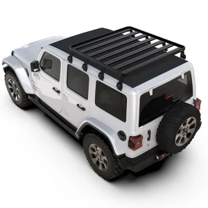 This 1358mm/53.46″ long full-size Slimline II cargo carrying roof rack kit for the Jeep Wrangler contains Slimline II Tray and Wind Deflector, as well as 8 Gutter Mount legs for mounting the Tray to the vehicle. It installs easily with no drilling required.