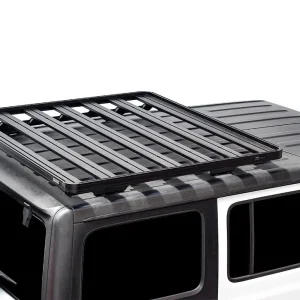This Slimline II 1/2 rack kit contains all the components needed to mount the Slimline II cargo carrying rack to a Jeep JL 4 door including the Slimline II tray (1425mm x 1358mm), the Jeep Extreme Mounting System and a Wind Deflector. Drilling is required for installation.
