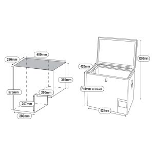 This unique model offers unmatched efficiency with the same small footprint as National Luna’s NL40 fridge but with over 50% more capacity. Best suited as a freezer in motor homes and other applications where height is not an issue.