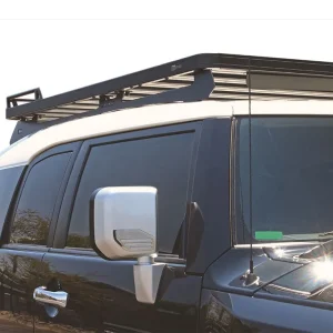 This 1964mm/77.3″ long full-size Slimline II cargo roof rack kit contains the Slimline II Tray, Wind Deflector and 2 Foot Rails to mount the Slimline II Tray to your Toyota FJ Cruiser. It easily installs using the existing factory mounting points. No drilling required.